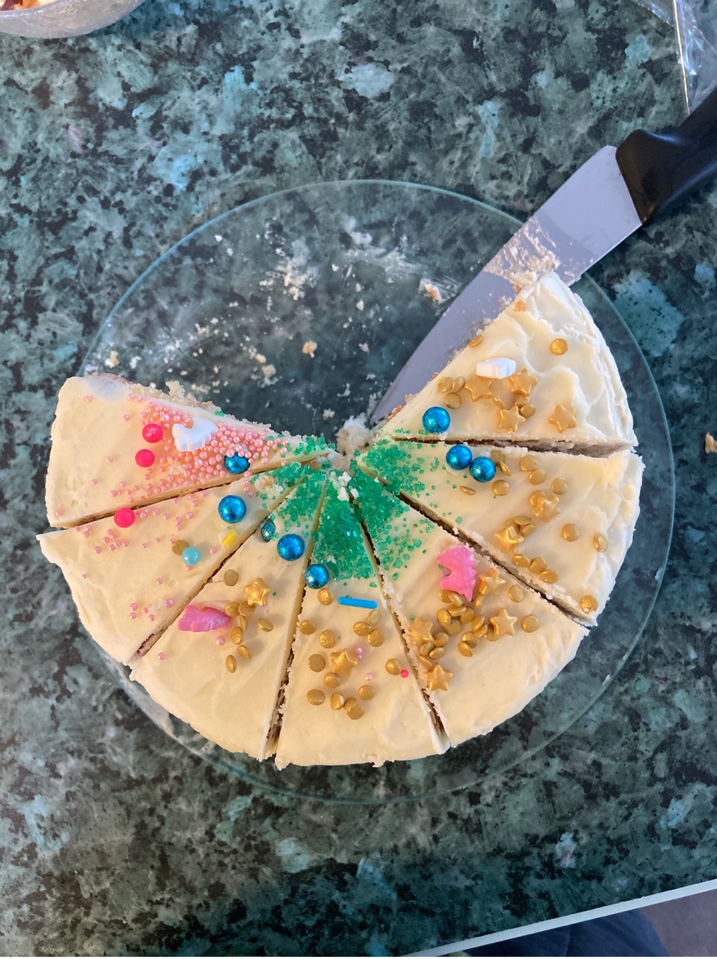 And finally 2 doors down is Lizzie’s house where I stopped to deliver back her muffin pan and a sample of what I made. In case any of you remember my cake episode from last year, Lizzie is the friend who makes the best white cakes ever.