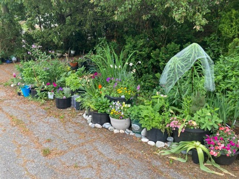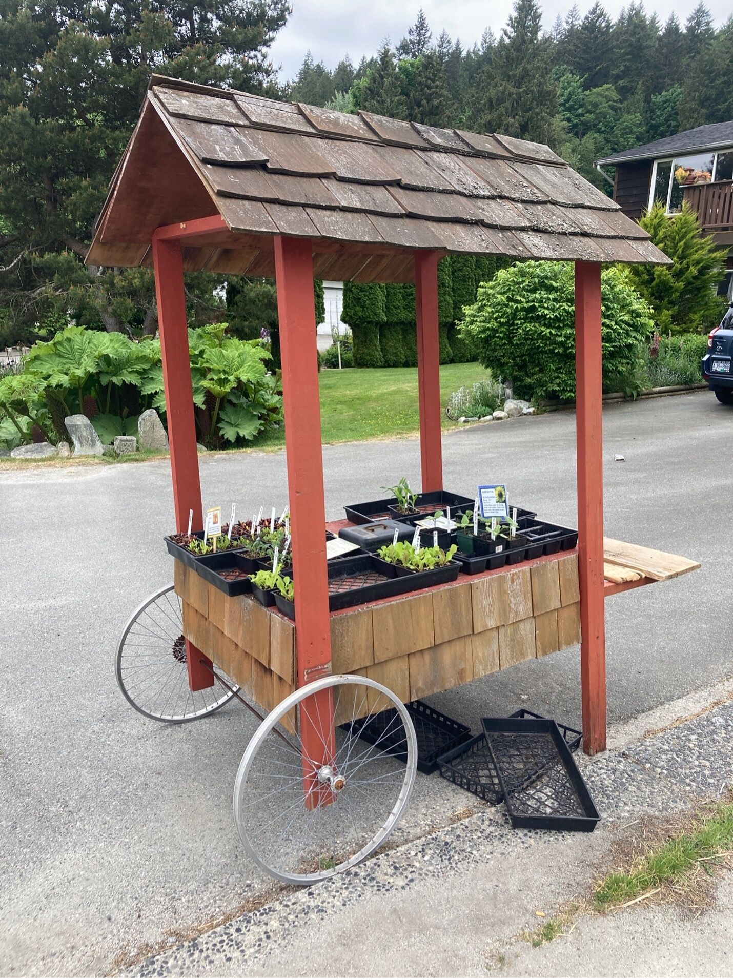 The next house I stopped at is about 150m away and there is a lovely cart outside where they sell seedlings every spring. I don’t know their names, but I have a picture in my mind of what the people in the house might look like. This is where we buy most of what goes into our garden, all for $2 a container. Now that I have written about them I am going to go back and find out who is growing my seeds for me.