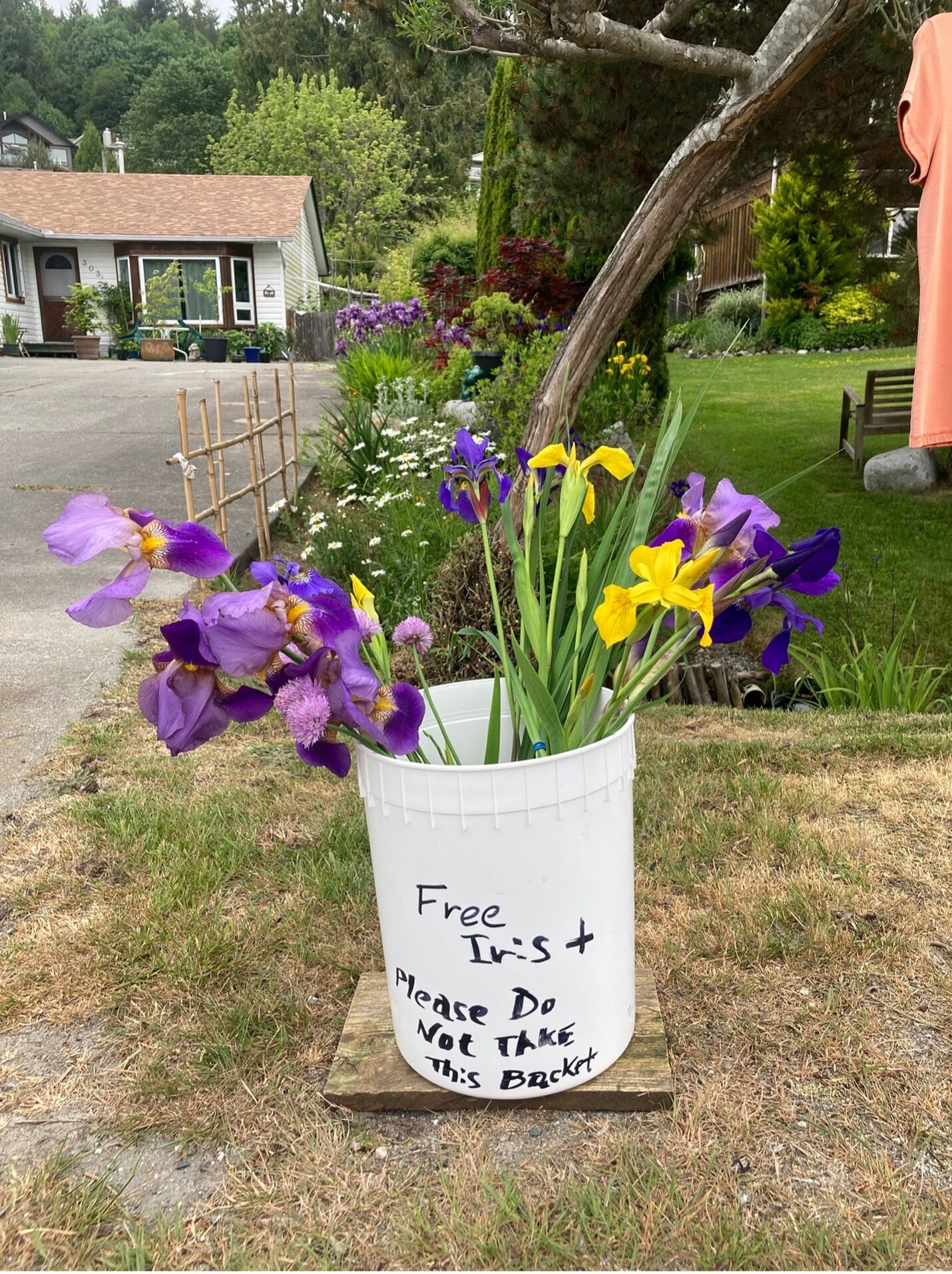 Next door to this seedling cart is a house where they were giving away flowers for free. This is just a lovely way to perk up your kitchen and no, I did not take the bucket.