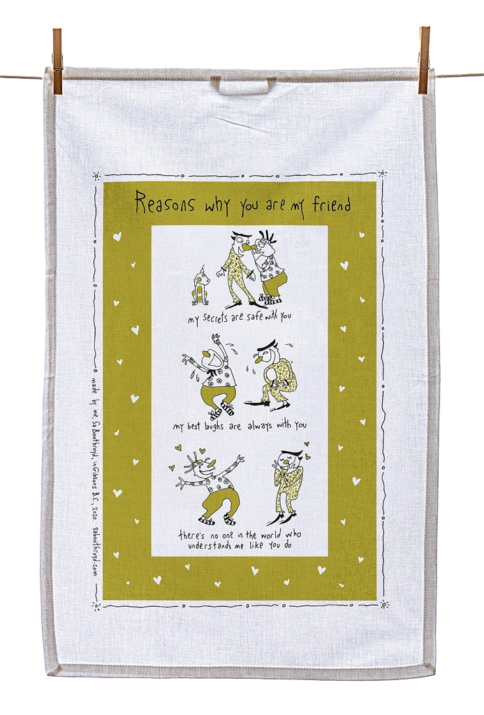 "Reasons To Have A Glass of Wine" tea towel wrapped around a good chardonnay.... your next dinner party hostess gift done!