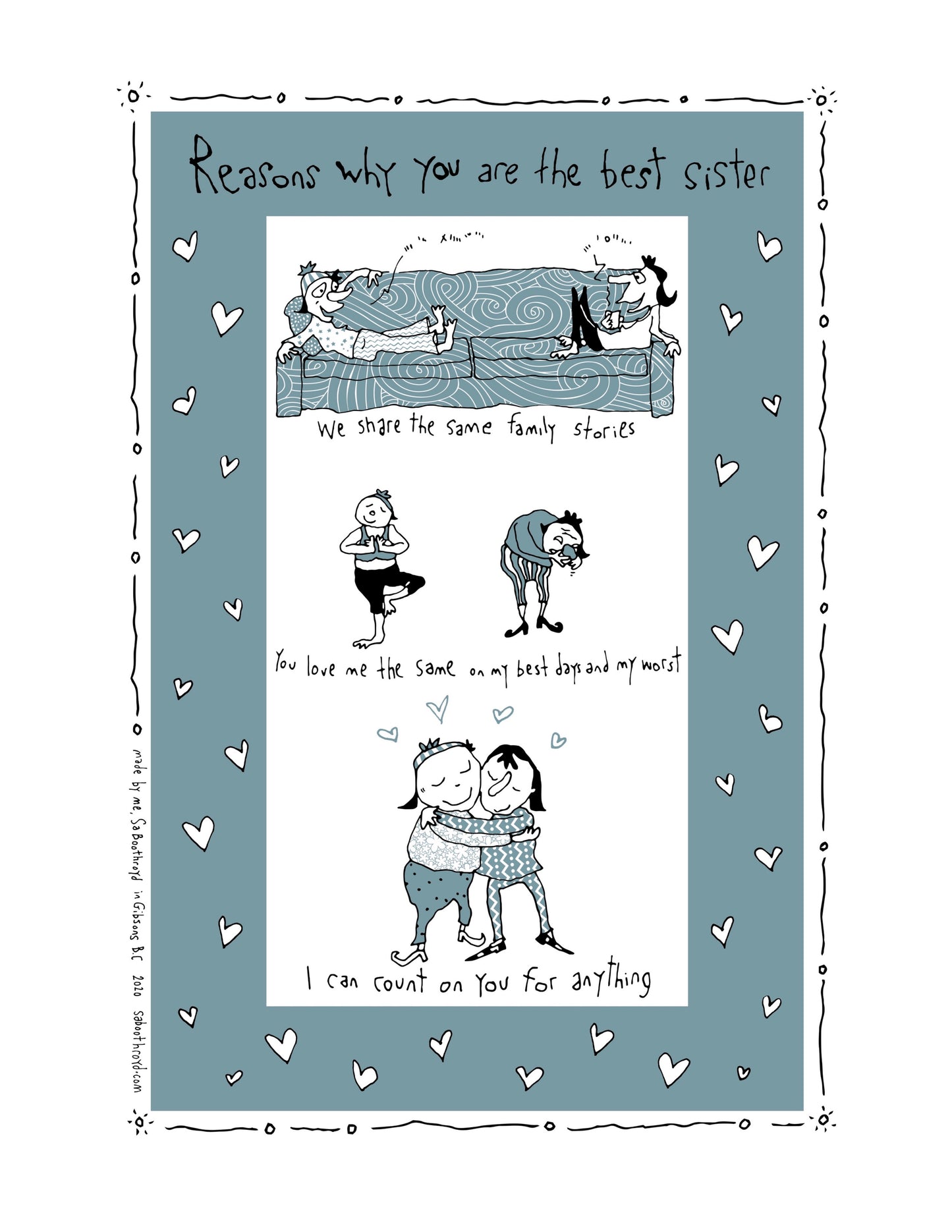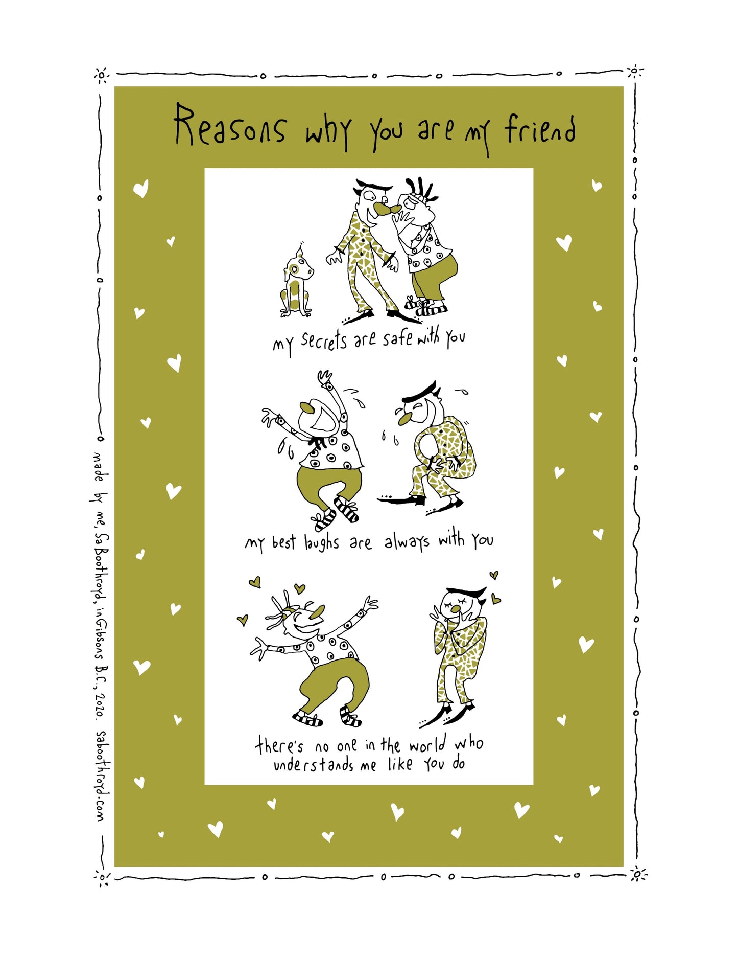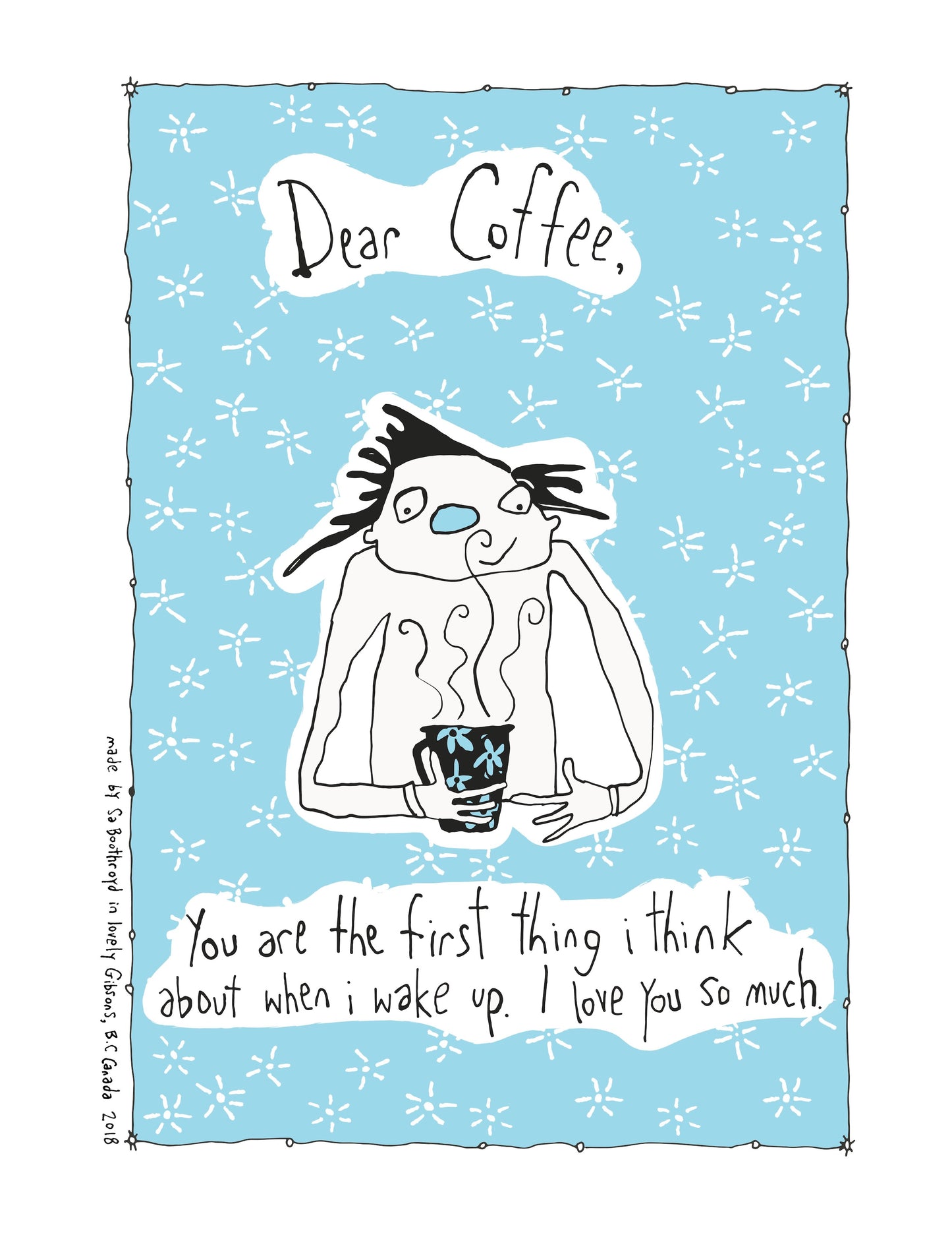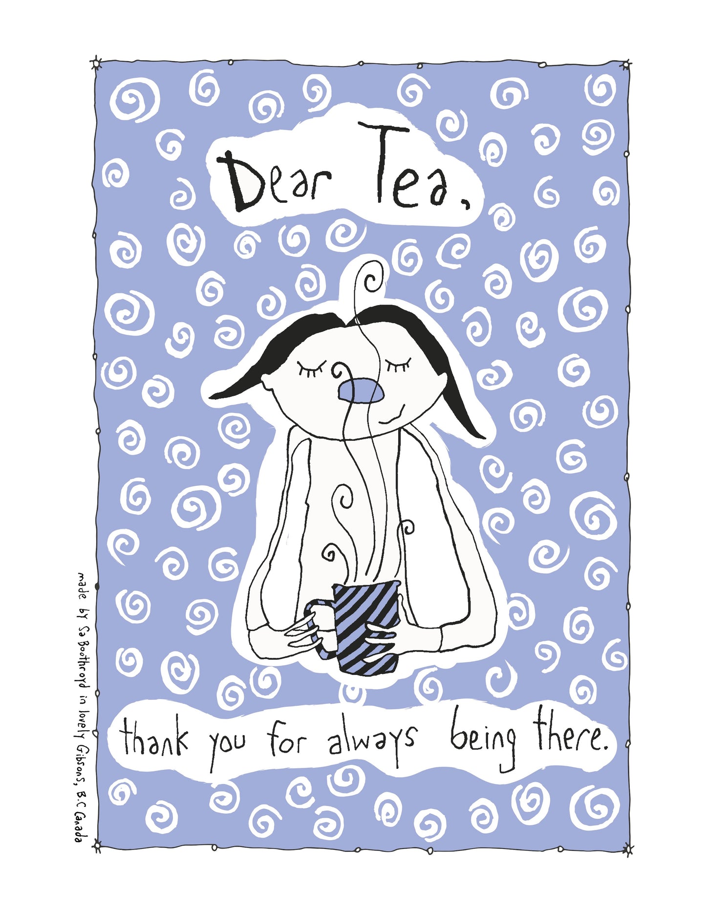 For those of you who don’t dry the dishes you might rather have my artwork as a print. You can either lean it against the wall or frame it. Framing something seems to make the image a little more precious. Also, a print will likely outlast a tea towel unless you put it in the washing machine by accident. ~Sa