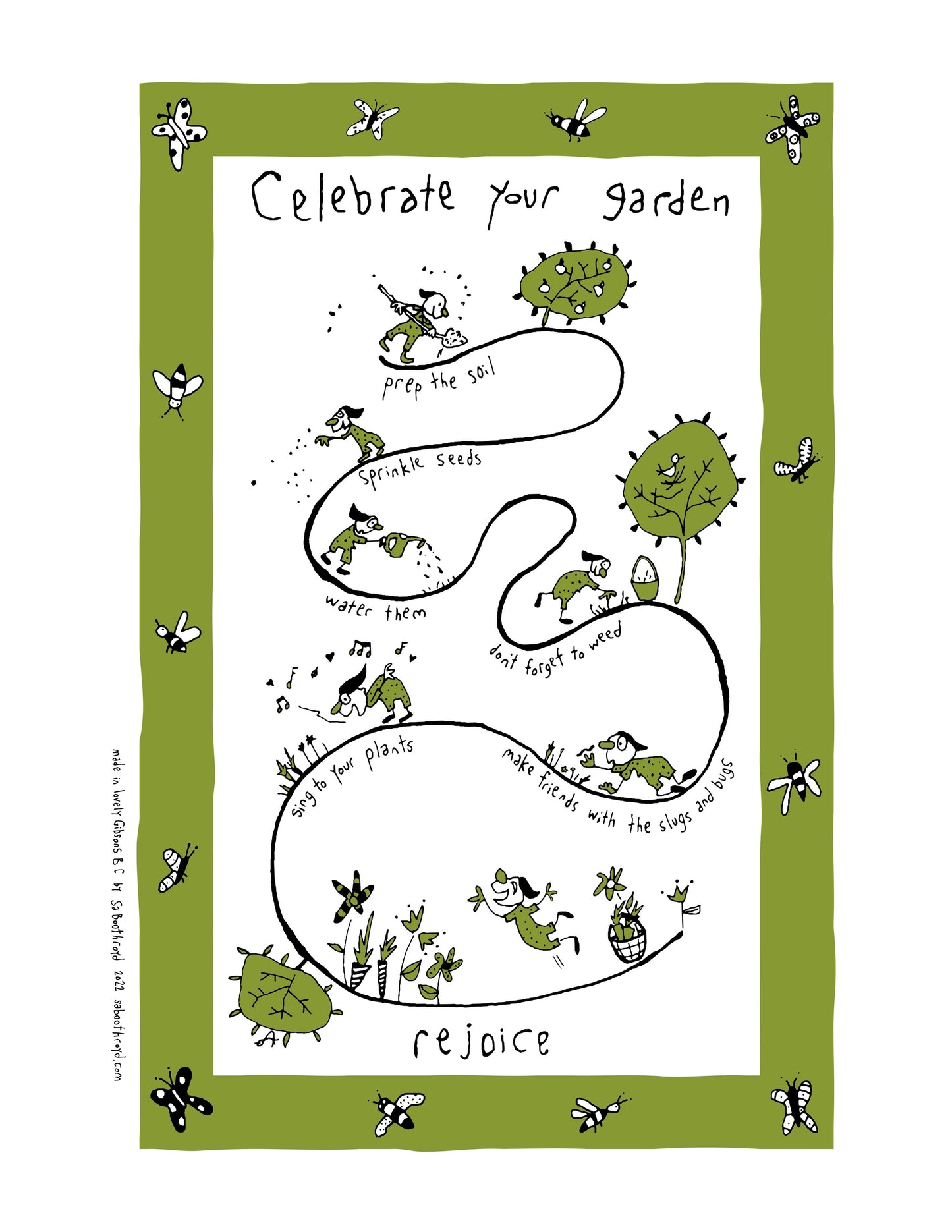 For those of you who don’t dry the dishes you might rather have my artwork as a print. You can either lean it against the wall or frame it. Framing something seems to make the image a little more precious. Also, a print will likely outlast a tea towel unless you put it in the washing machine by accident. ~Sa